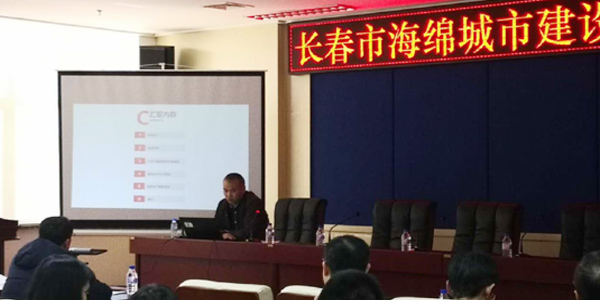 會上,市規(guī)劃院總規(guī)劃師劉志生首先介紹了《長春市海綿城市專項規(guī)劃2016-2030》海綿城市指標情況。隨后,我院環(huán)境建筑分院副院長孫宏亮,作為海綿城市技術中心主任,向參會人員詳細解讀了國家、省市海綿城市相關建設政策要求,解析了如何計算現有海綿面積,如何填報2019年海綿建設計劃;全國各地海綿城市建設情況以及我市海綿型道路、勞謙公園、水文化園等海綿城市建設情況;國內最新海綿技術產品的普及及應用情況。通過詳細的介紹,與會人員進一步加深了海綿城市建設對防止內澇、減輕市政管網壓力、修復生態(tài)環(huán)境重要性的認識。
