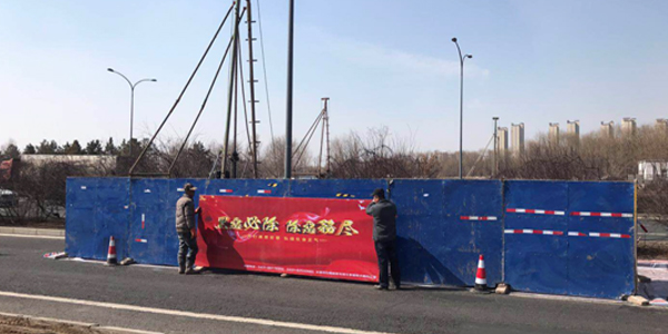 李玉東經(jīng)理對安全問題尤為重視,多次帶領(lǐng)公司班子成員深入現(xiàn)場進(jìn)行安全檢查工作。由于擬建工程位于市區(qū)主干路上,來往車流密集,并且我市近期室外風(fēng)力較大,李玉東經(jīng)理叮囑現(xiàn)場人員,不僅要注意生產(chǎn)安全,更要注意人身安全??辈炱陂g,恰逢我市開展掃黑除惡專項斗爭活動,我公司積極響應(yīng)市里號召,在圍擋兩側(cè)安裝了“掃黑除惡”宣傳牌,為我市的宣傳工作貢獻(xiàn)力量。