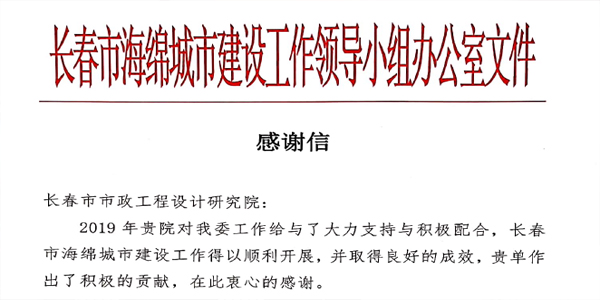 2020年1月17日長(zhǎng)春市城鄉(xiāng)建設(shè)委員會(huì)市政處劉寶學(xué)處長(zhǎng),代表長(zhǎng)春市海綿城市建設(shè)工作領(lǐng)導(dǎo)小組辦公室到我院進(jìn)行慰問(wèn)并送來(lái)了感謝信。感謝信對(duì)我院海綿城市建設(shè)管理技術(shù)中心及相關(guān)同志,在長(zhǎng)春市海綿城市建工作中,表現(xiàn)出高度的政治自覺(jué)、過(guò)硬的專業(yè)水平和頑強(qiáng)的工作作風(fēng)給予高度評(píng)價(jià)。并充分肯定了我院為長(zhǎng)春市海綿城市建設(shè)所做的突出貢獻(xiàn)。鼓勵(lì)我院再接再厲,繼續(xù)服務(wù)長(zhǎng)春市海綿城市建設(shè)工作,為建設(shè)綠色、和諧的“海綿長(zhǎng)春”再立新功。