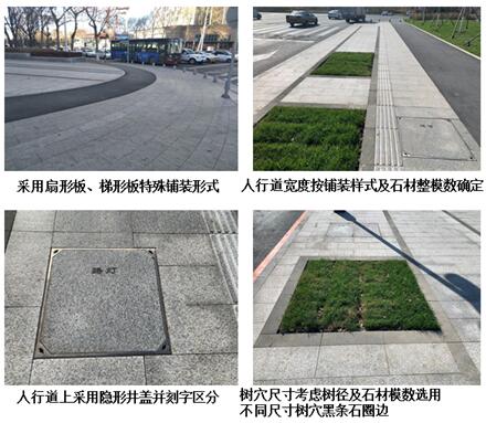 2)人行道鋪裝按鋪裝樣式及石材模數(shù)確定寬度;