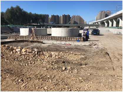 臨河街南延長(zhǎng)線穿越繞城高速采用下穿方式穿越,于臨河街線位處,繞城高速路基改橋梁形式采用5*25梁橋形式,工藝先修建繞城高速橋梁,橋墩既為墩又為樁,橋建成后逐步開挖修建U型槽、管廊、人行道等。其中由東向西第一跨為既有輕軌四號(hào)線及人行道空間,第二、三跨為U型槽及機(jī)動(dòng)車道空間,第四跨為綜合管廊空間。