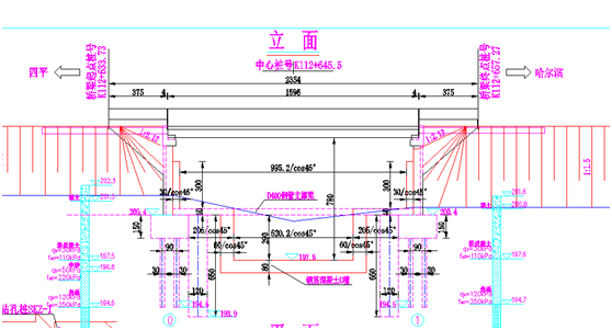 采用橫撐支撐橋臺(tái)后,采用鋼筋混凝土U型槽頂進(jìn),加固橋臺(tái)基礎(chǔ),從而降低基礎(chǔ)深度,達(dá)到降低水利高程的目的。